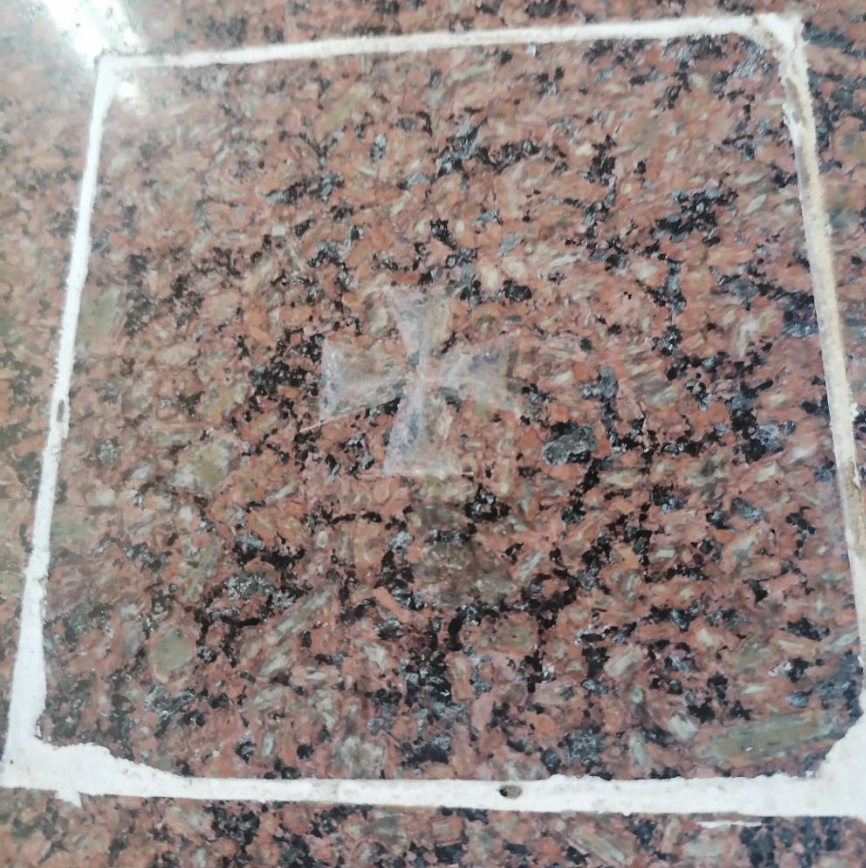 All Catholic churches have a relic placed in the altars of a former saints or saints. There is no information currently available on the saint whose relic is in our altar, but the place where the relic has been placed is in the altar as depicted below.